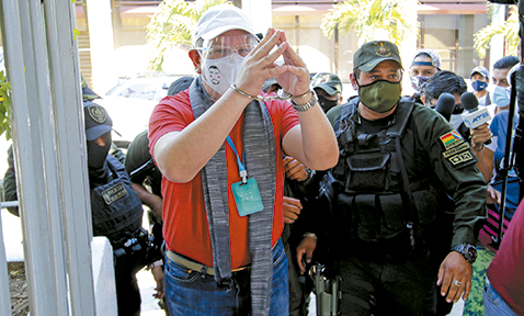 El ex director de la FELCC de Santa Cruz, Gonzalo Medina, arribó la mañana del viernes al aeropuerto Viru Viru procedente de la ciudad de La Paz, el coronel, con detención preventiva, fue trasladado bajo estrictas medidas de seguridad hacia una clínica del centro de la ciudad. A su llegada, Medina a...